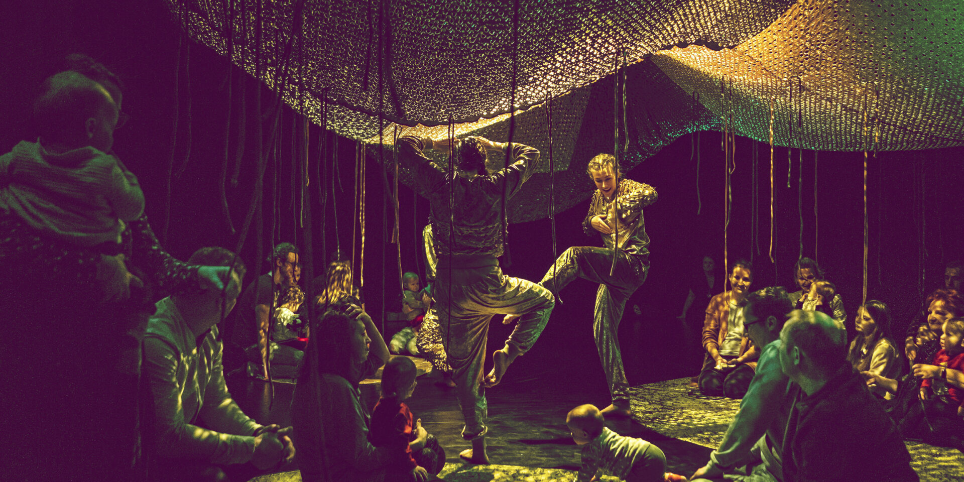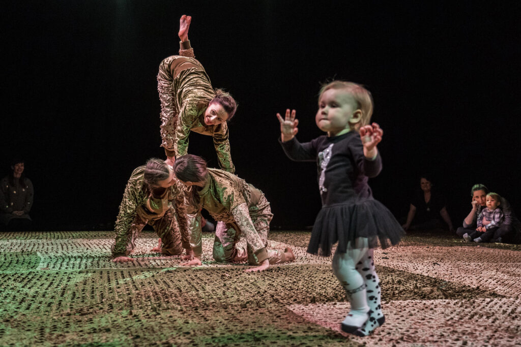 Prosimy o niehamowanie naturalnych reakcji dzieci (płacz, śmiech, słowa, gaworzenie, swobodne przemieszczanie się). W spektaklu dochodzi do interakcji z tancerzami i obiektami.